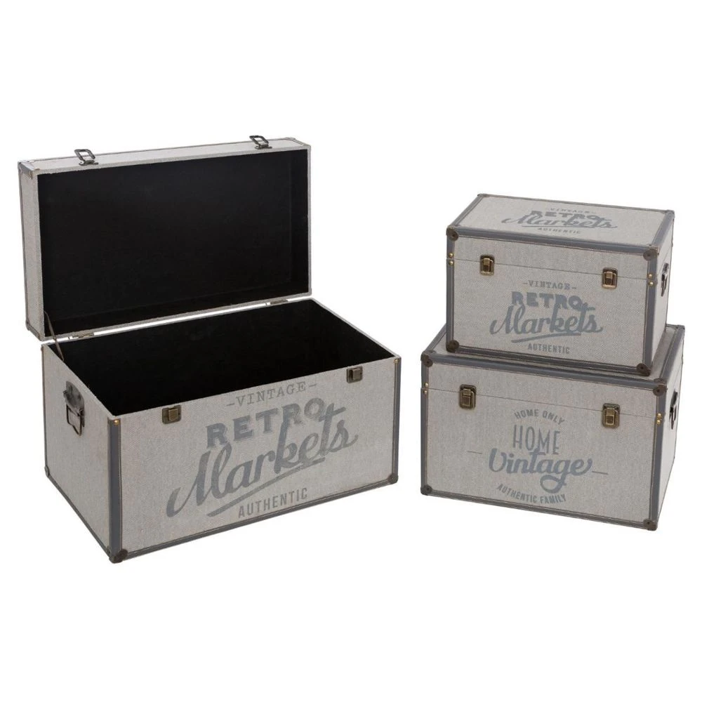 Libérez votre pouvoir déco avec les produits de la marque Atmosphera ! Créée en 2011, cette marque propose des articles de décoration d’intérieur tendances et accessibles. Grâce à la grande variété de son offre, Atmosphera permet à chacun de trouver son style et d’exprimer sa créativité.Lot de 3 malles vintages, MDF, polyuréthane et métal, dimensions S : L. 40 x l. 24,5 x H. 25,5 cm / M : L. 48 x l. 30,5 x H. 31,5 cm / L : L. 58 x l.34,5 x H.36 cm