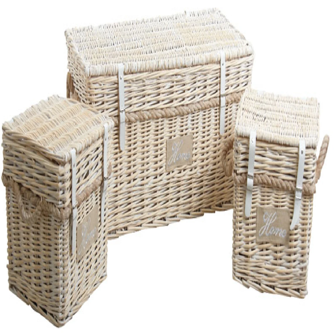 Points forts Aubry Gaspard Malles carrées en osier blanchi (Lot de 3).