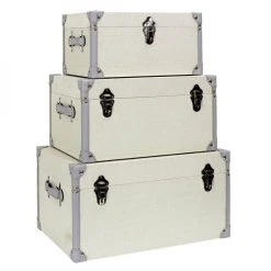 Altobuy KITTY – Lot De 3 Malles De Rangement Blanches Et Grises