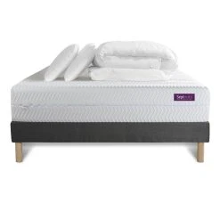 Vous voulez placer un meuble marquant dans votre chambre ? Ce lit pourrait vous intéresser. Notre descriptif vous expose les moindres caractéristiques de ce lit. Un lit exceptionnel Ce lit enveloppé tout autour d’un revêtement en tissu affiche un design tendance et accrocheur. La haute tête de lit boutonnée apportera la touche de personnalisation dans votre chambre. Son profil bas fera paraître votre chambre plus grande. Grâce à sa teinte grise, ce lit s’adapte avec facilité à différents types de décor. Un lit plurivalent Le rembourrage de ce lit à 2 places et son merveilleux tissu vous assureront des sommeils sans interruption et surtout de qualité. Il vous entourera d’un moelleux cocon que vous ne voudrez plus quitter. Vous apprécierez aussi sûrement ses tiroirs frontaux qui vous feront disposer d’espace supplémentaire pour le rangement de vos affaires personnelles ou de vos linges de maison. Un lit solide Avec ses matériaux de construction sélectionnés avec soin et robustes, ce lit vous apportera le soutien nécessaire pendant des années. Le sommier à lattes est inclus, tandis que le matelas est fourni séparément