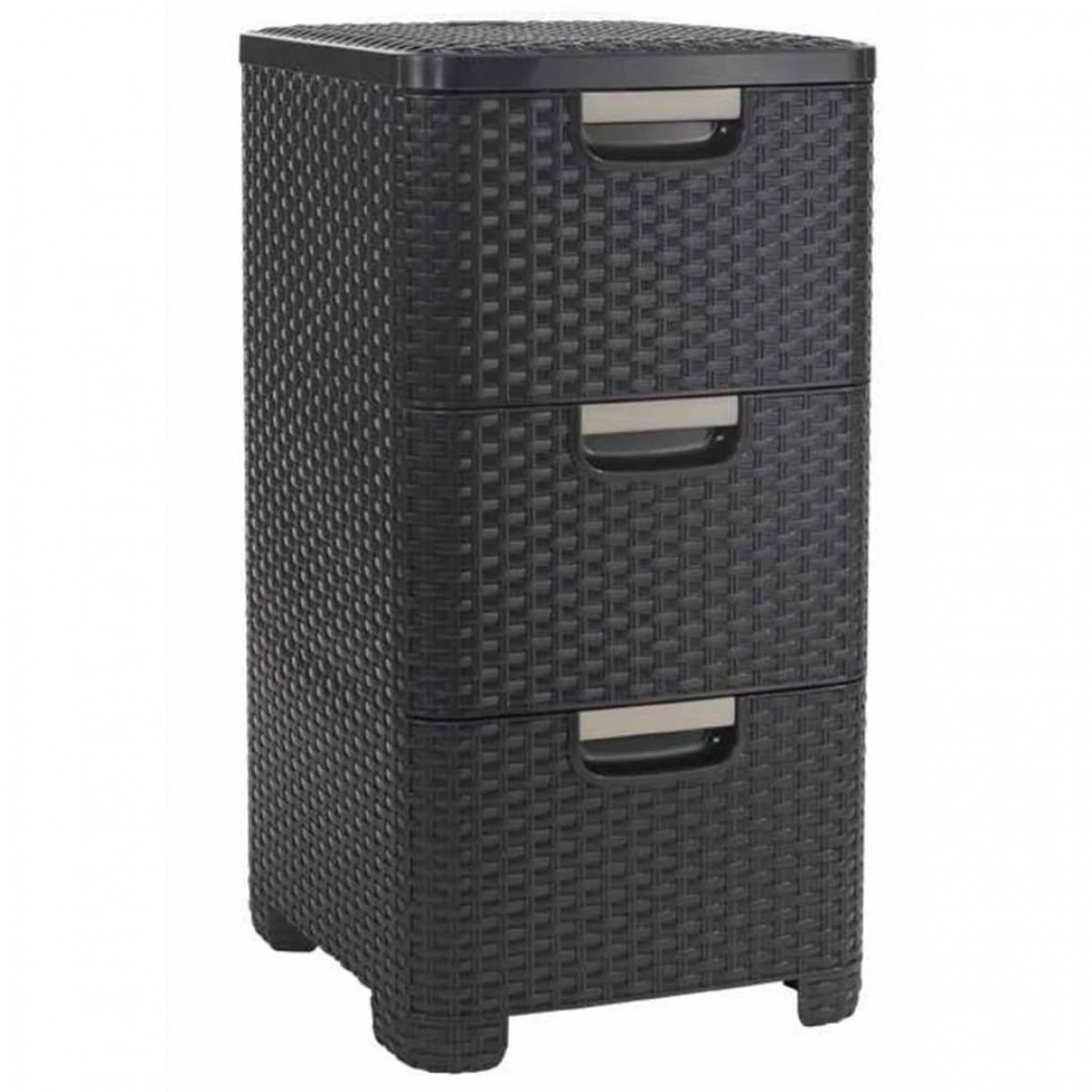 L’armoire à tiroirs Style de Curver est une solution de rangement élégante dotée de 3 tiroirs, idéale pour un large éventail d’articles, tels que les magazines, les livres, les fournitures de bureau et même les accessoires de salle de bain. Chaque tiroir a une capacité de 14 L et il est facile à utiliser grâce à ses poignées confortables avec une finition douce au toucher et des glissières lisses. Les tiroirs de rangement sont équipés d’un système de verrouillage et d’un format A4 pratique. Ce meuble de rangement combine le look attrayant du rotin naturel avec la commodité du plastique et sera idéal pour ranger vos affaires à l’abri des regards et de la poussière !Les commandes sont livrées à toutes adresses, en France continentale. Nous ne livrons pas la Corse et. vidaXL ne livre pas les DOM-TOM.