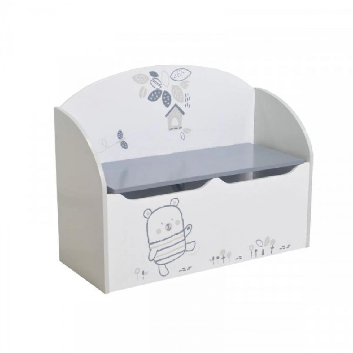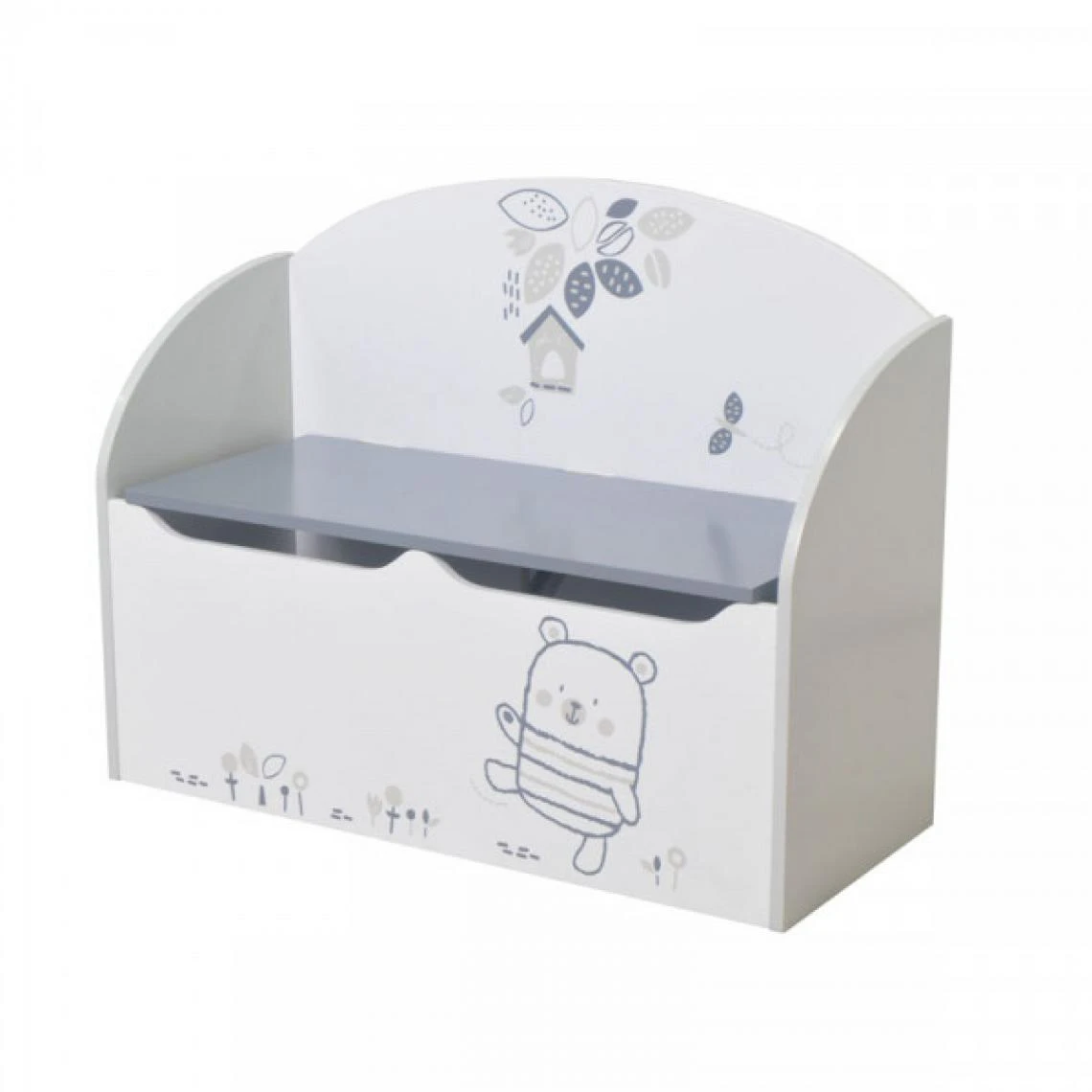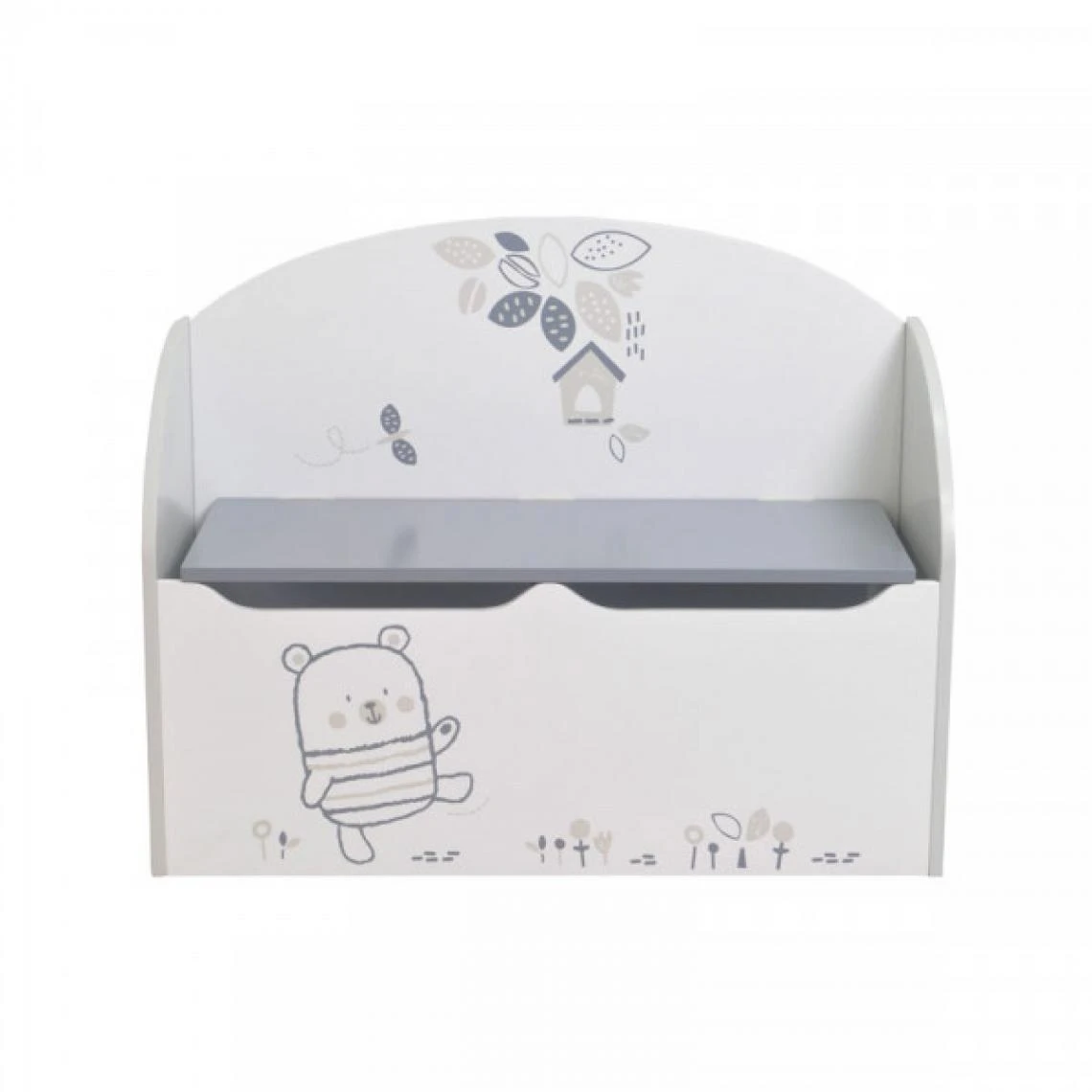 Coffre à jouets et mini banc blanc mat et gris avec petits oursons