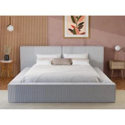 Vente-unique Lit Coffre 180 X 200 Cm – Velours Côtelé – Gris Clair – TIMANO