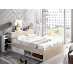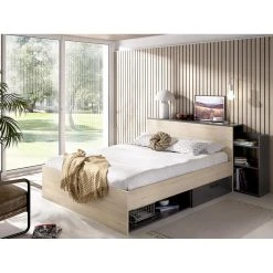 Vente-unique Lit Avec Tête De Lit Rangements Et Tiroirs – 140 X 190 Cm – Coloris :…