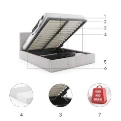 Interbeds Lit Rembourré Hilton Avec Rangement 140×200 En Gris Clair