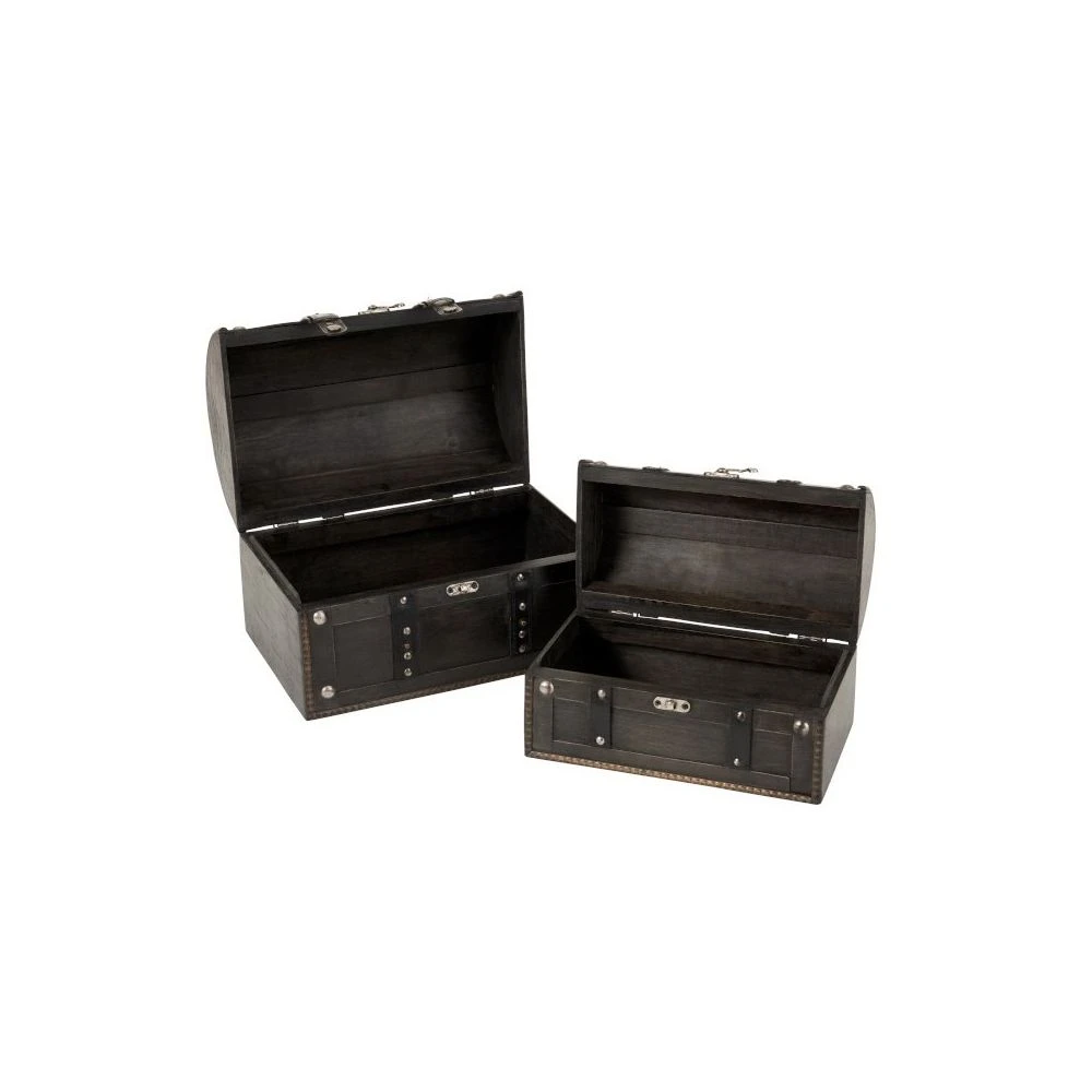 Points forts J-Line Set De 2 Malles Ronde Bois Noir