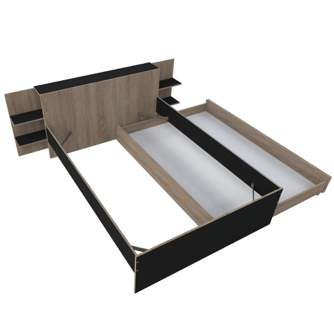 Points forts Le Quai Des Affaires Lit CITY 140×190 + tête de lit chevet+ 1 maxi tiroir / Noir & chêne blanchi