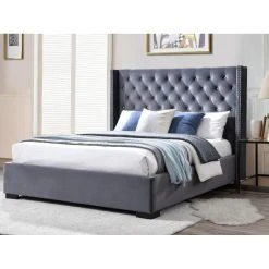 Vente-unique Lit Avec Tête De Lit Capitonnée – 160 X 200 Cm – Velours – Gris – MA…