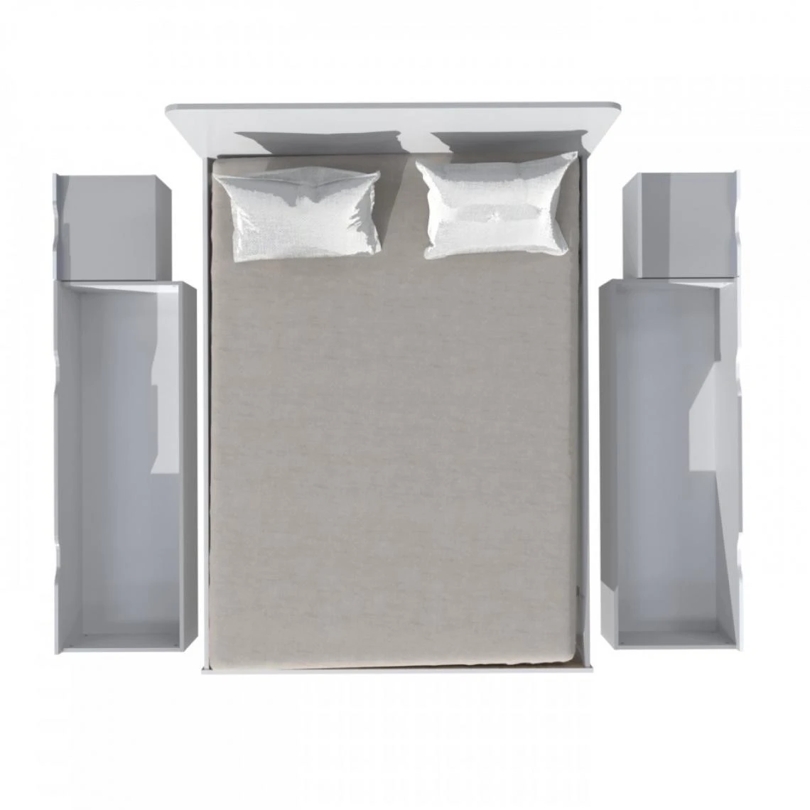 2 tiroirs et 2 chevets intégrés.