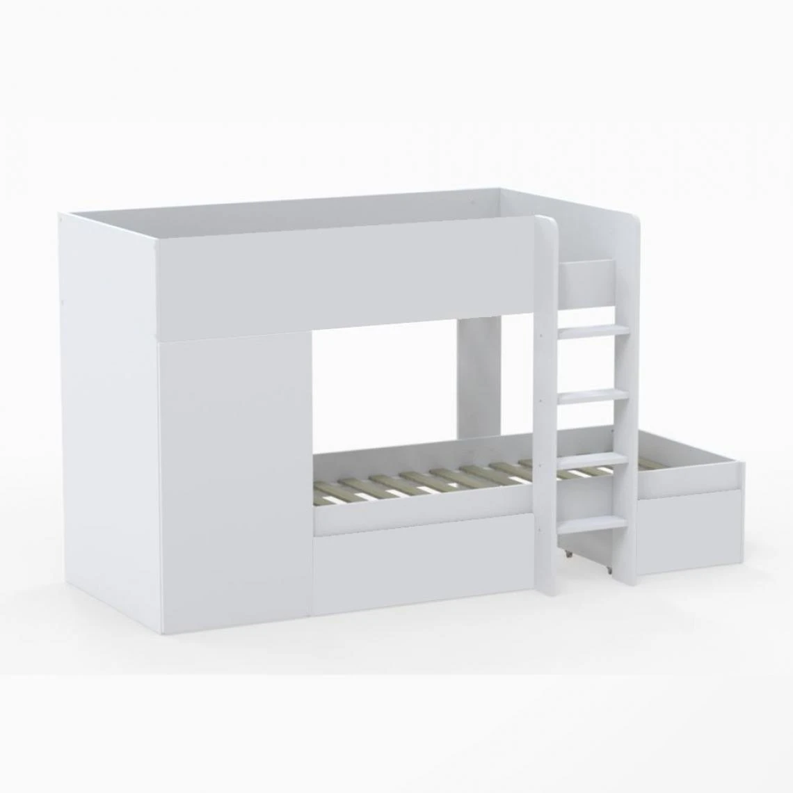 Points forts Le Quai Des Affaires Lit superposé TWIN 90×190 avec armoire et tiroirs + 2 sommiers / Blanc
