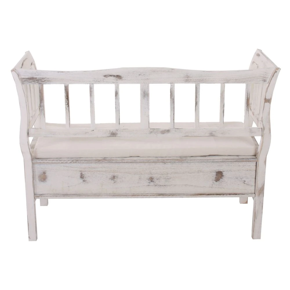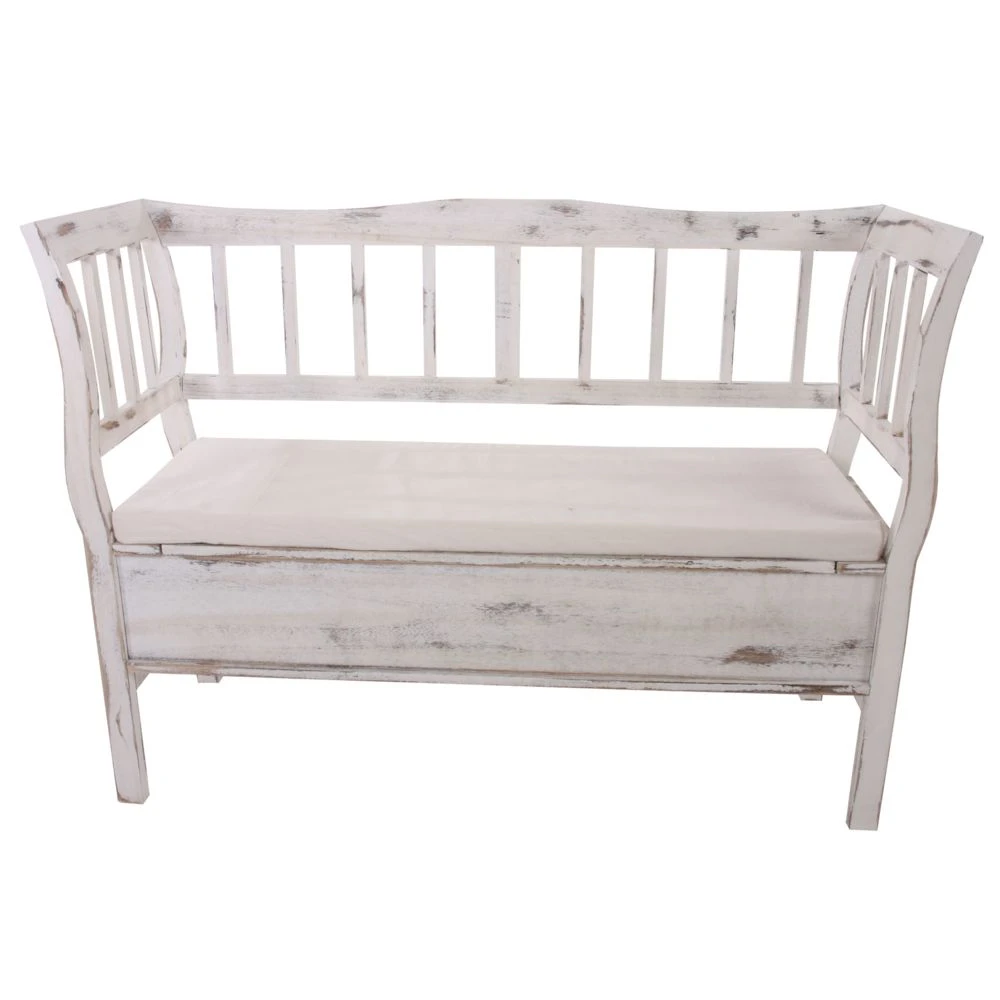 Banc avec rangement T207, bois blanc shabby chic vintage Livraison: 1x banc + 1x coussin d’assise -housse du coussin lavable