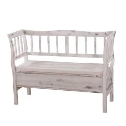 Points forts Mendler Banc banquette de rangement T207 bahut coffre avec coussin ~ bois blanc shabby chic