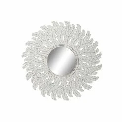 Points forts DKD Home Decor Miroir mural DKD Home Decor MDF Blanc Feuille d’une plante (120 x 3 x 120 cm)