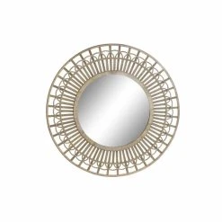 Points forts DKD Home Decor Miroir mural DKD Home Decor Verre Marron Clair Rotin (90 x 2.5 x 90 cm)