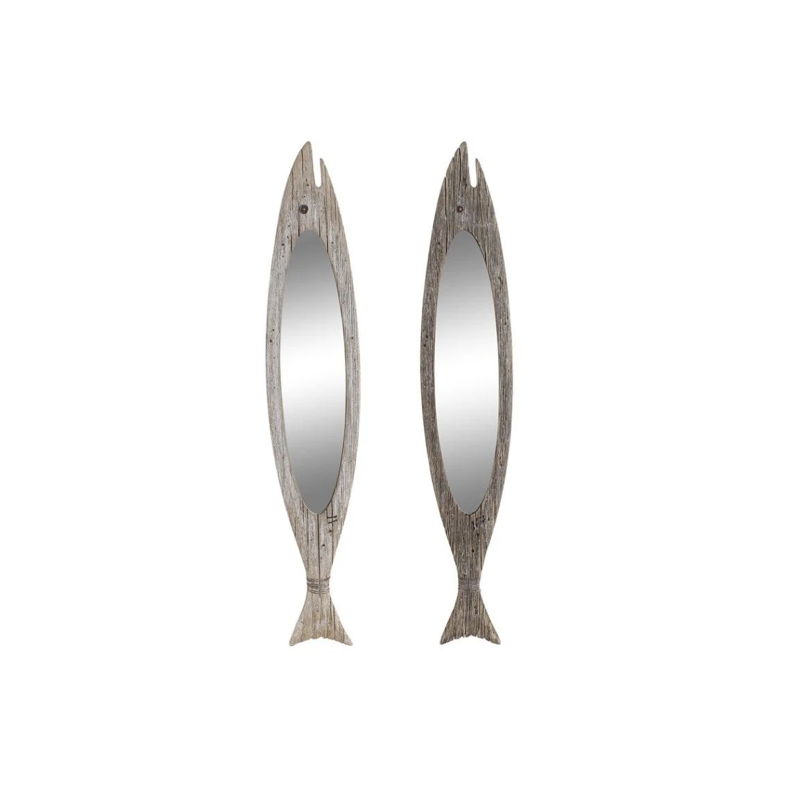 Points forts DKD Home Decor Miroir mural DKD Home Decor Verre Naturel Métal Blanc Poisson (22 x 3 x 120 cm) (2 Unités)