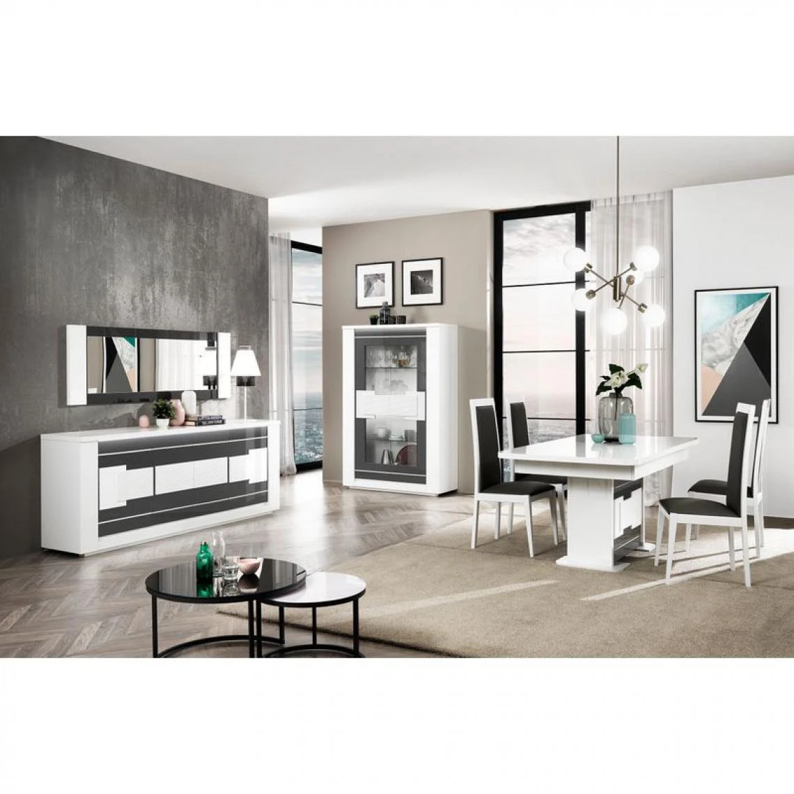 Points forts Modern Living Miroir BELLARIVA laqué blanc/ gris anthracite