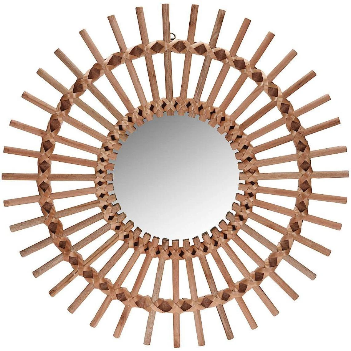 Points forts Other Miroir en bois Boho dans un cadre en bois, rond 50 cm