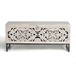 Coffre en bois manguier avec grande capacité de rangement. Facile à nettoyer. Livré monté. Elégant et moderne.