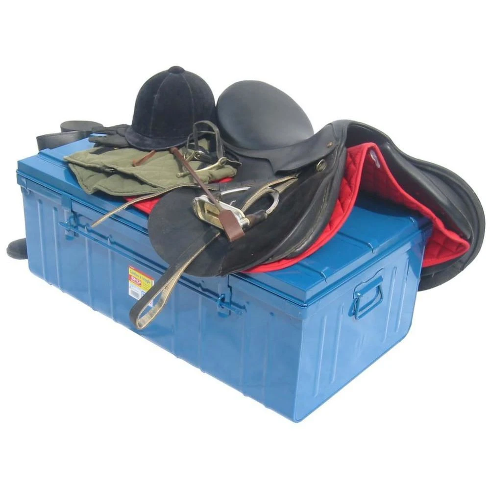 Malle de rangement en métal bleu