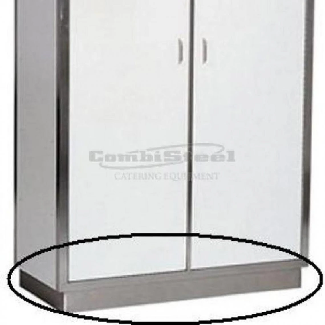 Plinthe pour armoire haute de chez Combisteel. La longueur de la plinthe varie selon celle de l’armoire. La hauteur est de 100 mm |