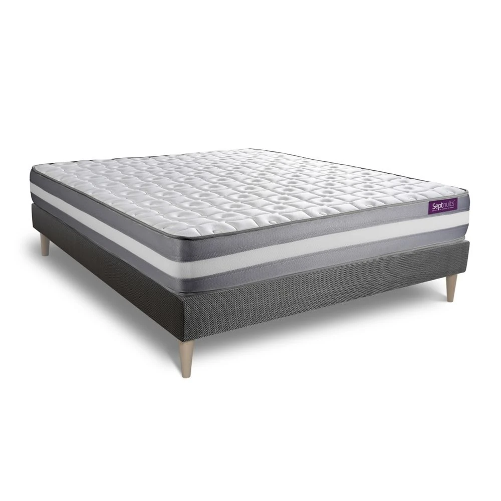Points forts Septnuits Matelas + sommier kit gris 160×200 Memo Plus Mémoire de forme 3 zones