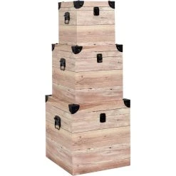 Set de 3 malles impression lames de bois