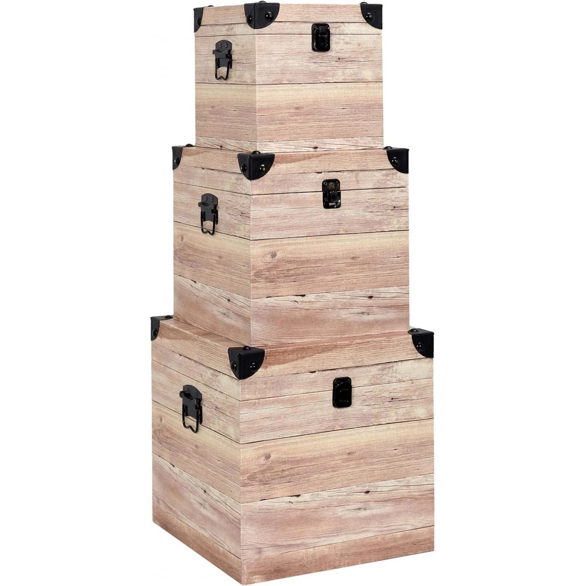 Points forts The Home Deco Factory Set de 3 malles impression lames de bois.