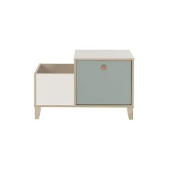 La façade du tiroir propose une mise en teinte pastel Bleu et une prise de main design et originale. Le tiroir amovibles libère une niche de rangement. Vous déposerez jouets et vêtements dans le tiroir et le bac de rangement laisse à portée de mains le surplus de jouets.