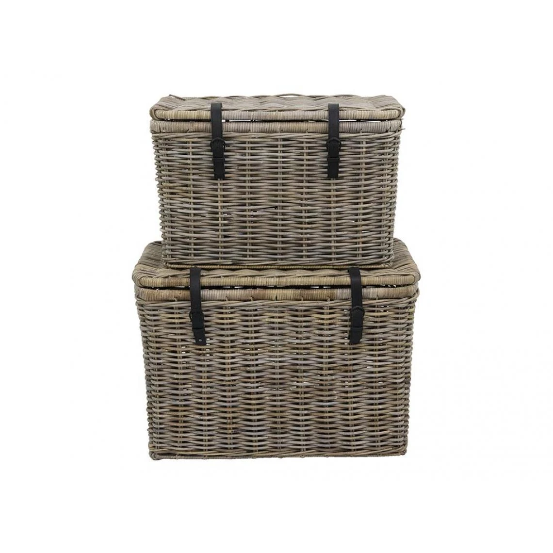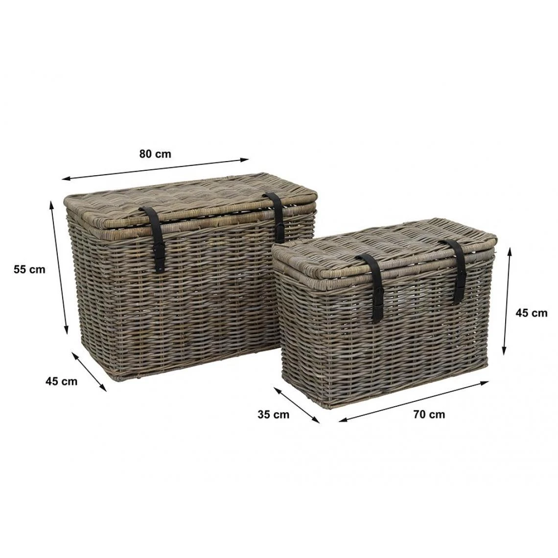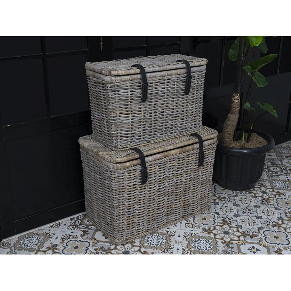 Points forts Vente-Unique Lot de 2 malles en kubu NEFTA – L80 x P45 x H55 cm et L70 x P35 x H45 cm – Gris naturel